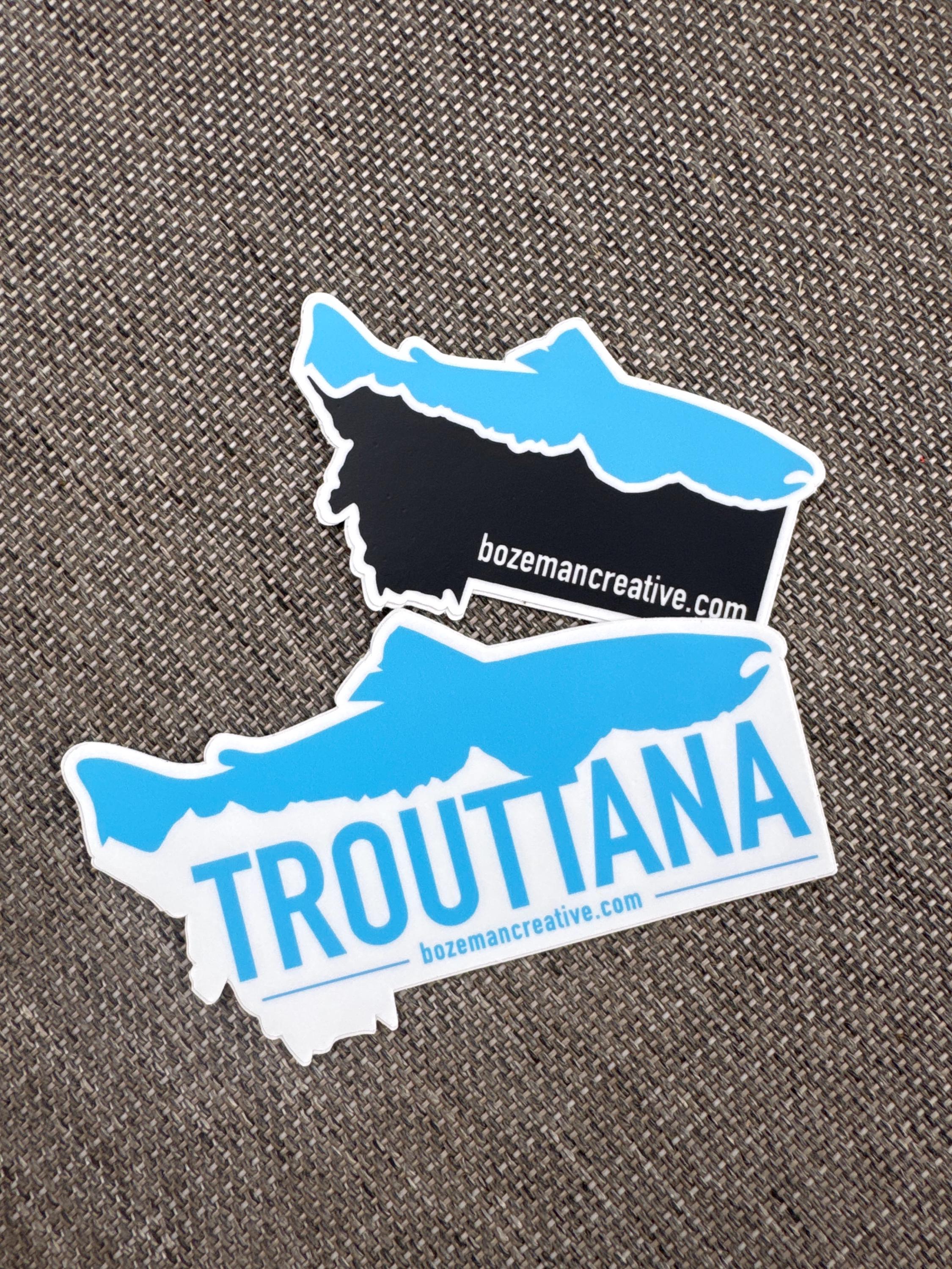 Trouttanna, Montana Trout Fishing Sticker - This is an original illustration by Karl Schwartz of Bozeman Creative. The 4" x 2.25" stickers is made from thick, durable vinyl with a UV laminate that protects it from scratching, rain and sunlight.